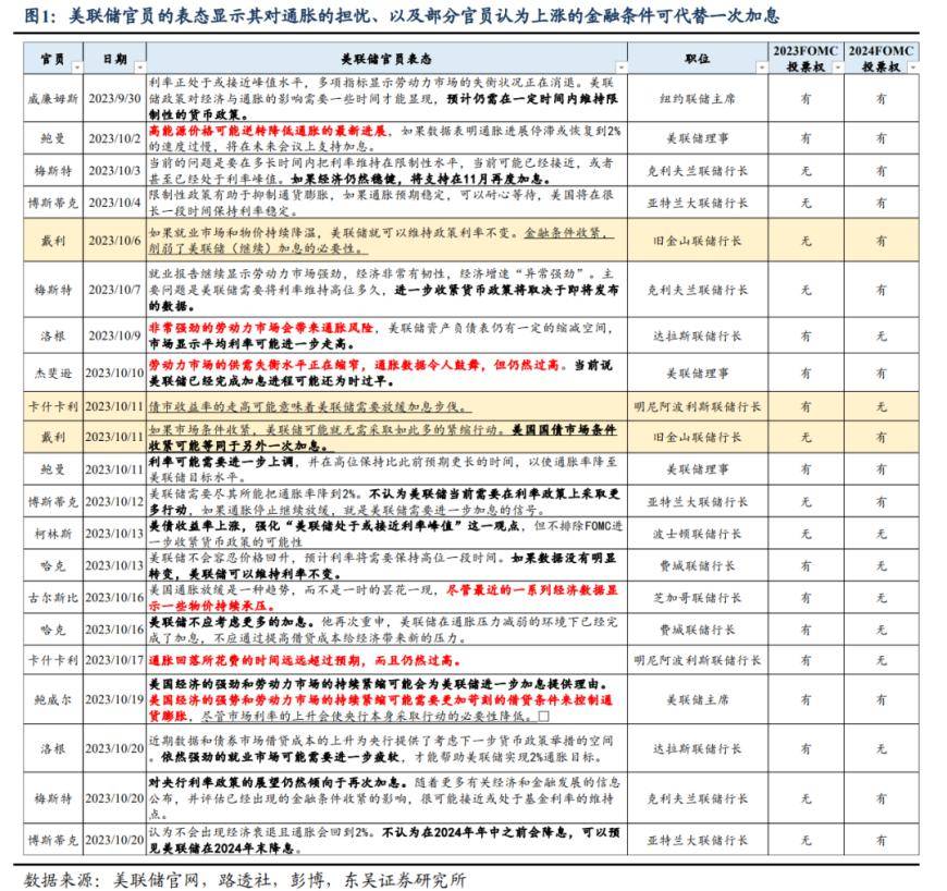 财通宏观则指出,目前利率水平具有限制性,但由于三季度经济表现较强,美联储仍然保持政策灵活性。在短期通胀难以大幅恶化的情况下,对于美联储货币政策的关注重心应当有所转移。一方面,再度加息的可能性很小,目前已经接近加息周期结束,“是否再度加息”的影响已经让位于“高利率将持续多久”的影响。
