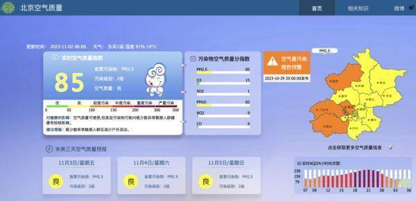 据北京市生态环境监测中心预测,预计11月3日凌晨前后,受高压系统西北风影响,扩散条件改善,污染过程结束。