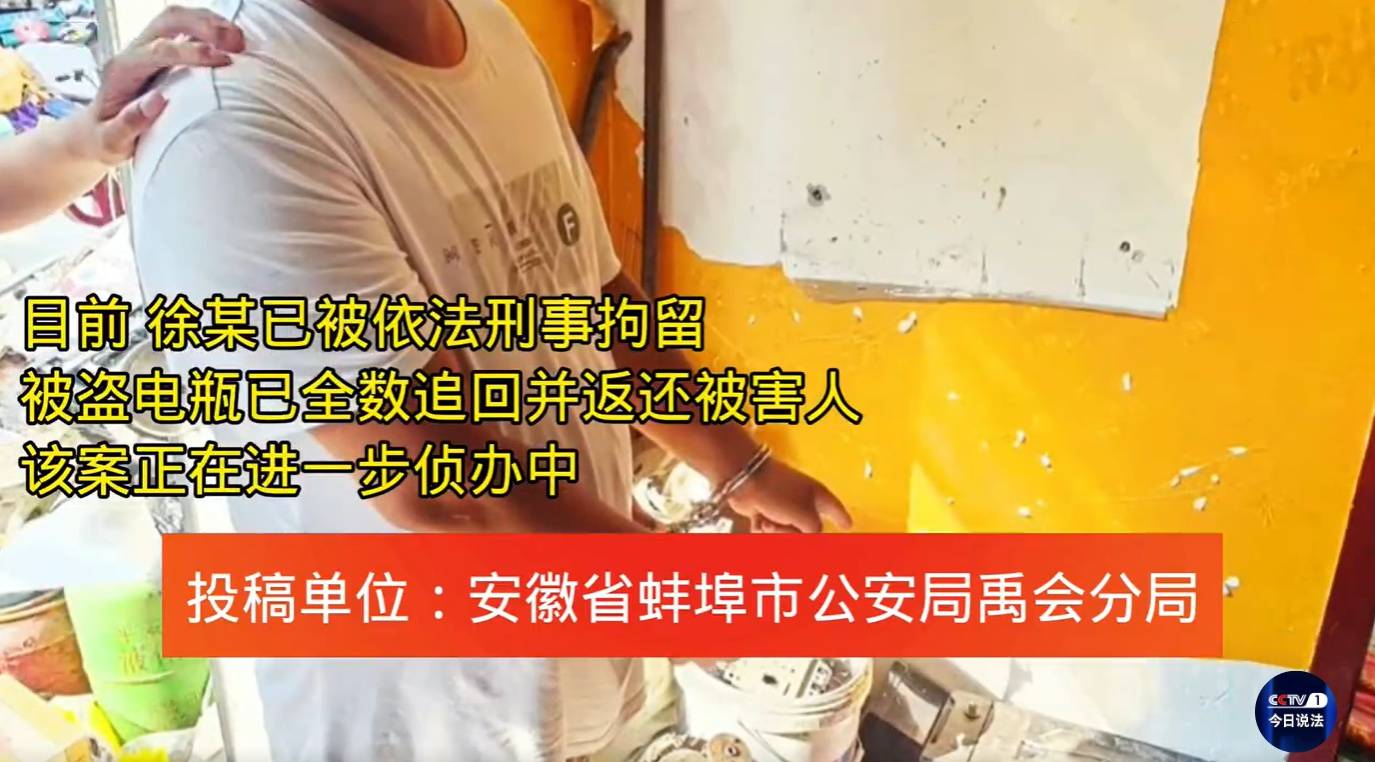 目前,徐某已被依法刑事拘留,被盗电瓶已全数追回并返还被害人,案件正在进一步侦办中。