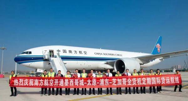 此航线由南航执飞,每周执行一班。进港航班为墨西哥城-太原,主要承运水果、冰鲜、配件等货物;出港航班为太原-浦东-芝加哥,承运货物主要包括电商件、手机配件、电子烟等。