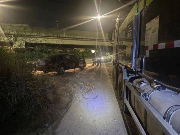 见时机成熟,神湾警方果断出击,立即开车堵住嫌疑车辆的去路,随后双面包抄将嫌疑男子王某当场抓获,查获作案车辆1辆、偷油设备一批、被盗柴油约80升。