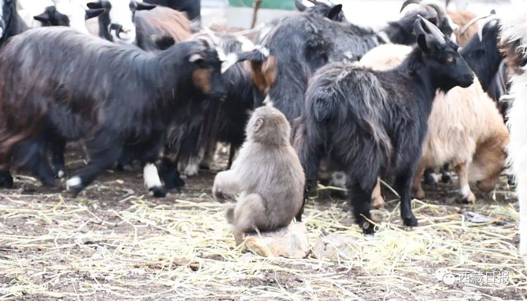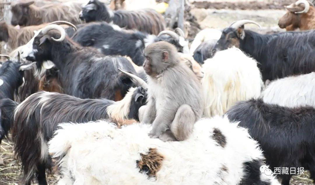 小猴子时而骑在小羊身上