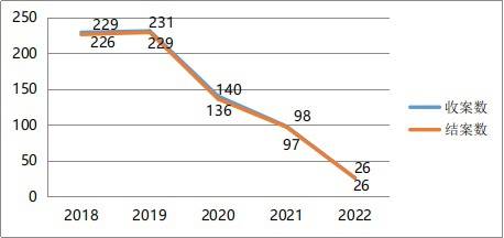 自2018年至2022年,上铁法院共受理涉轨交行政案件57件,审结54件。虽然此类案件数量相对较少,但总体呈逐年上升趋势。