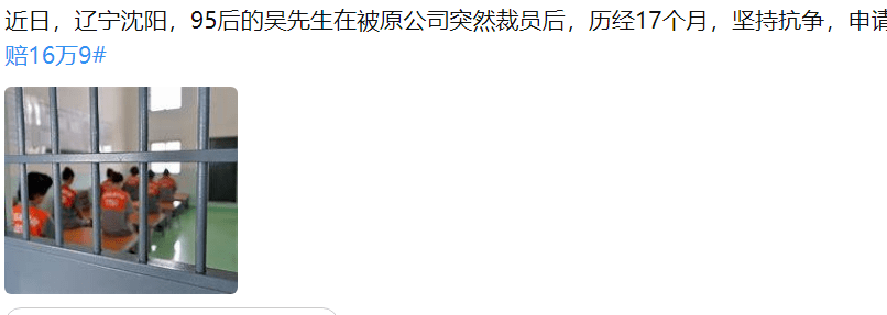 95后男子被裁员抗争17个月获赔16万995后男子被裁员抗争17个月获赔16万9