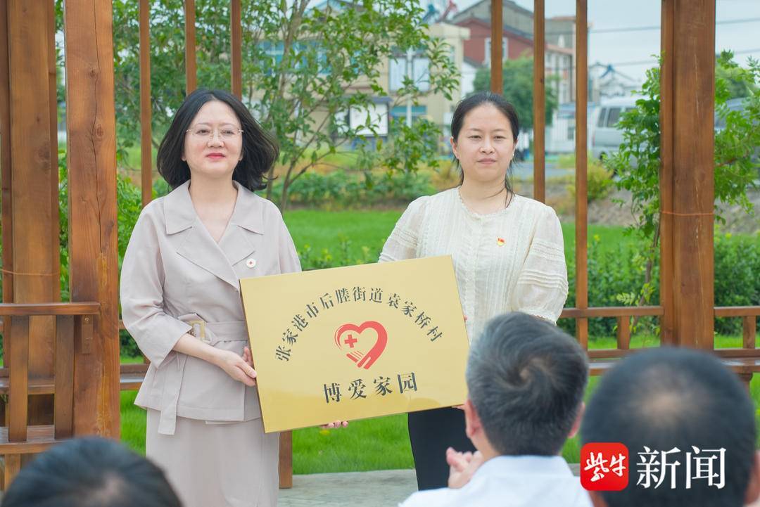 活动中,张家港市红十字会秘书长黄莺和后塍街道袁家桥村党委副书记王丽霞为“张家港市后塍街道袁家桥村博爱家园”授牌。“医心向党,医路为民”。袁家桥村党委一直秉承“听党话、跟党走、铭党情”理念,以“解民忧、纾民困、暖民心”为目标,致力在党建引领下,打造品牌、惠民、放心的“健康阵地”。“健康乐袁”是集“中医知识科普基地”“健康知识传播窗口”“中医药科普知识宣讲课堂”于一体的健康服务综合阵地,真正地把“健康服务”送到群众家门口,引导群众了解掌握健康知识,践行文明健康的生活方式。