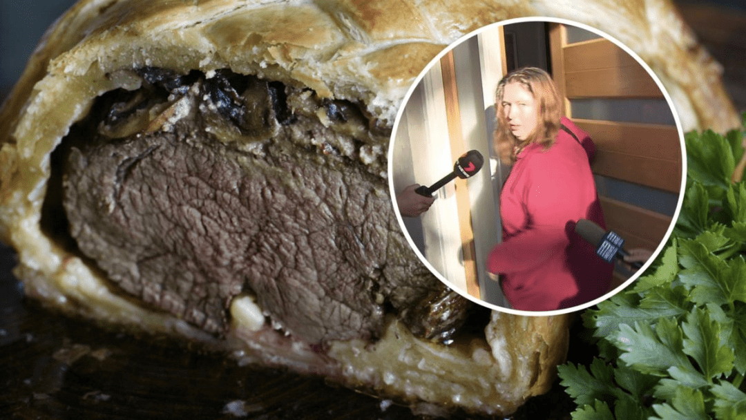 尽管男主没来,但这场聚餐Erin还是准备得很用心的,她下厨给客人们制作了威灵顿牛排,搭配蘑菇。