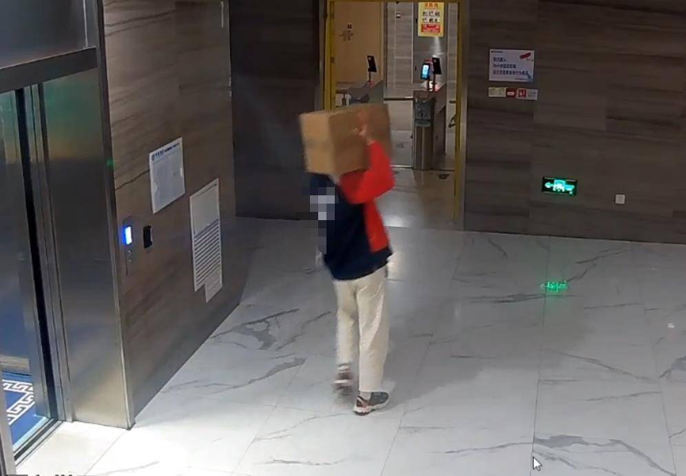 监控显示,该男子在9月底至10月中旬,经常背着一个纸箱背包从该企业厂区M1模组实验分部办公室出来,且背包背出后再也没有背回厂区内。