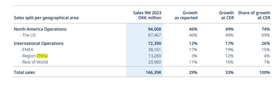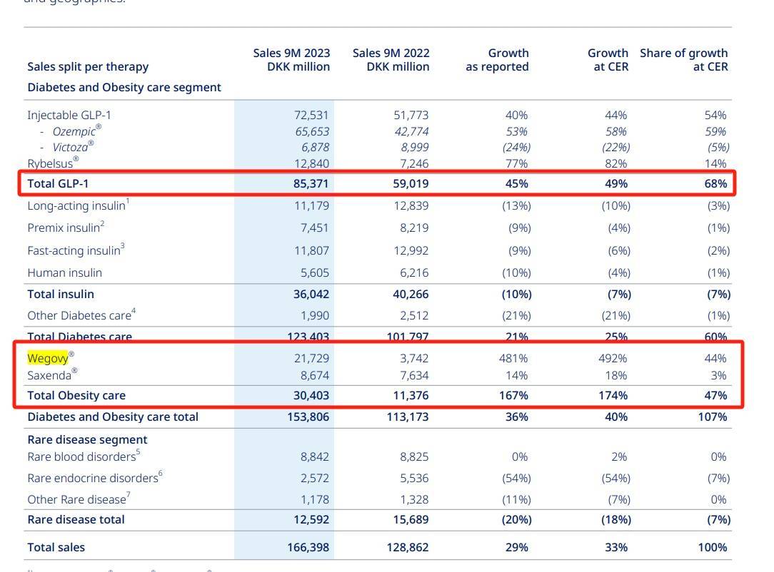 前三季度和第三季度部分财务数据 来源:诺和诺德财报
