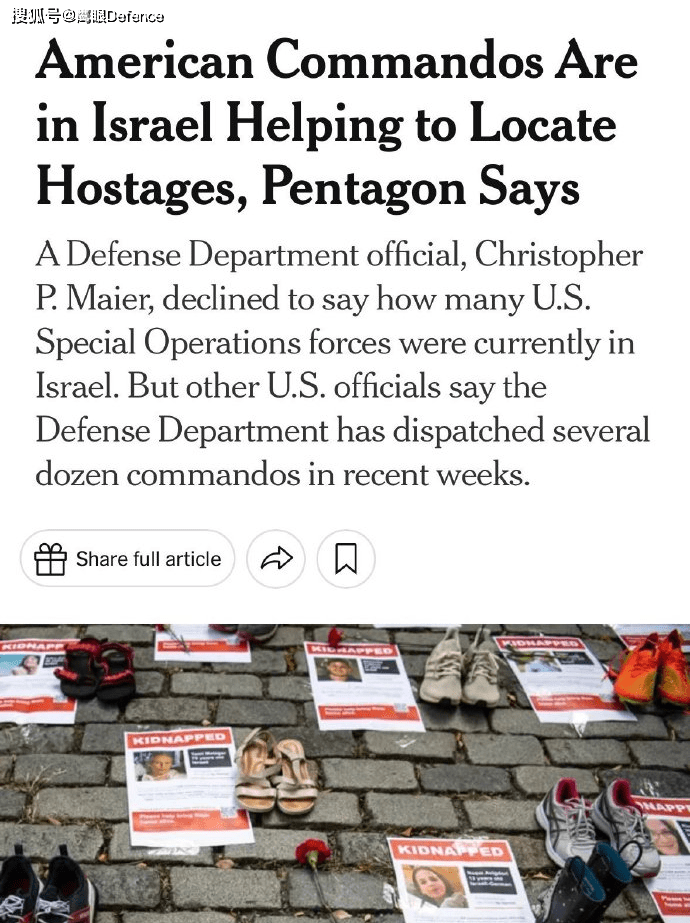 值得注意的是,美国等国的特种部队很可能也随以色列国防军一道进入了加沙地带,执行拯救人质任务,网络上有照片显示一些佩戴星条旗标识的军事人员进入了加沙。五角大楼高级官员告诉《纽约时报》,证实美军特种部队已经在以色列,与美国国务院、FBI以及其他机构的人质解救专家一道工作,协助以色列国防军拯救200多名各国人质,这名美国官员强调,美军特种部队尚未被分配战斗任务,目前仅在规划、后勤和谈判等方面协助以色列国防军。