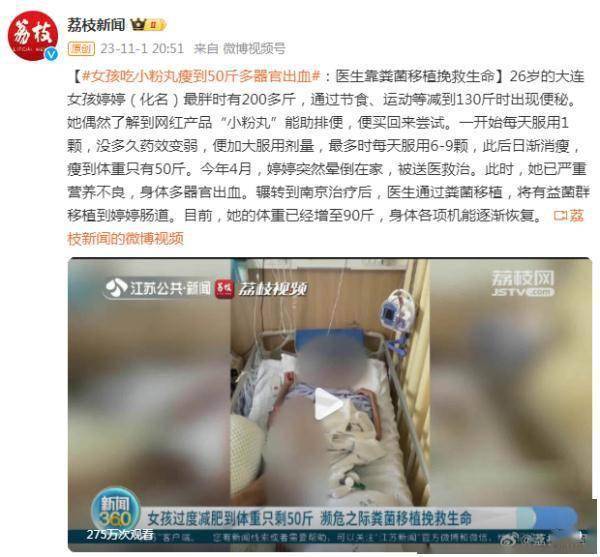 原标题:女孩吃“小粉丸”瘦到50斤多器官出血:医生靠粪菌移植挽救生命