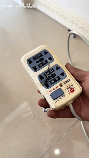 10月29日,王师傅在视频中详细展示了市北区一户业主家的电路情况。在刚开始检查时,发现厨房烧水壶的外壳带有220伏的电压。经过一系统排查后,才找到“病因”,原来是家中的“熊孩子”将一串项链插入卧室的插线板中,导致了短路,而这个插线板竟然是房主私自连接的厨房电路。