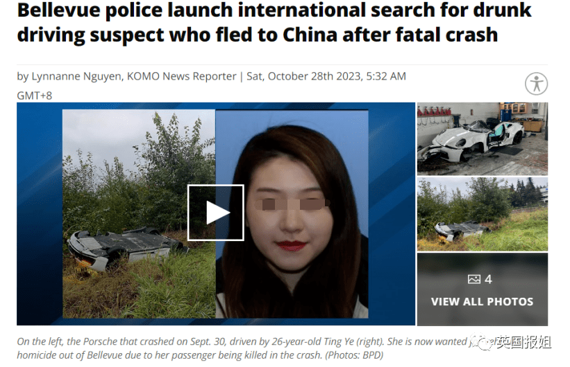 因为Ye Ting已经受伤,事故发生的当下,她没有立刻被捕,而是被送往附近医院接受治疗,随后接受了血液检测。但在逮捕令生效之前,10月9日上午11点,Ye Ting竟然一声不响地离开了美国,从温哥华入境加拿大。