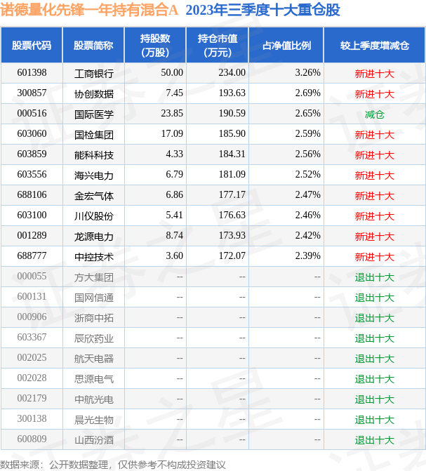 诺德量化先锋一年持有混合A为混合型-偏股基金,根据最新一期基金季报显示,该基金资产配置:股票占净值比93.41%,无债券类资产,现金占净值比7.51%。基金十大重仓股如下: