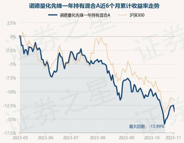 证券之星消息,11月2日,诺德量化先锋一年持有混合A最新单位净值为0.6635元,累计净值为0.6635元,较前一交易日下跌1.34%。历史数据显示该基金近1个月下跌4.55%,近3个月下跌9.42%,近6个月下跌13.64%,近1年下跌24.27%。该基金近6个月的累计收益率走势如下图: