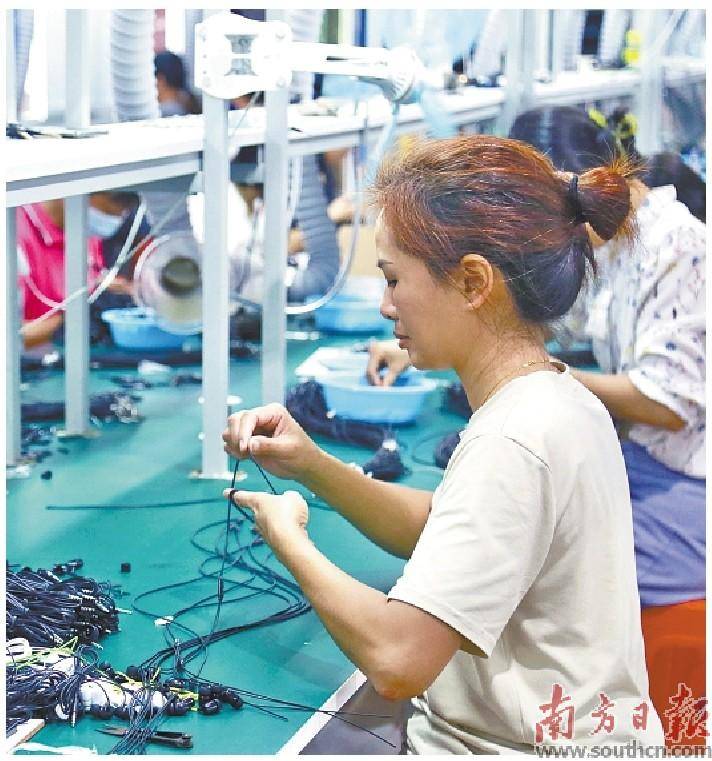 湛江吴川市黄坡镇林屋村的广东嘉滢电子有限公司内,灯光明亮、分区有序,村里不少妇女在此就业。低头凝神、手指翻飞,焊接喇叭、安装按键、装配耳机壳……一道工序接着一道工序,人们日常使用的耳机就这样被生产出来。