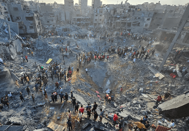 (刚被以军轰炸的贾巴利亚难民营)