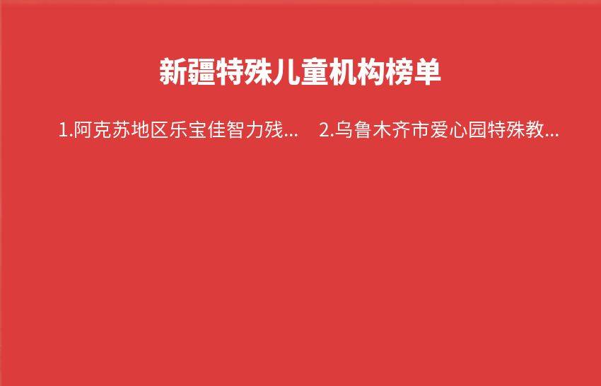 新疆特殊儿童机构2023年08月28日-2023年09月03日榜单来源于自闭症家园网十大品牌排行数据,自闭症家园网排行榜栏目提供最新的新疆特殊儿童机构排行榜,基于自闭症家园网用户访问与行为数据数据,为广大网友提供真实的实时新疆特殊儿童机构、医院与学校榜单,实时更新最受欢迎的康复治疗机构排名,为广大用户选择儿童康复训练机构实时权威的榜单参考。