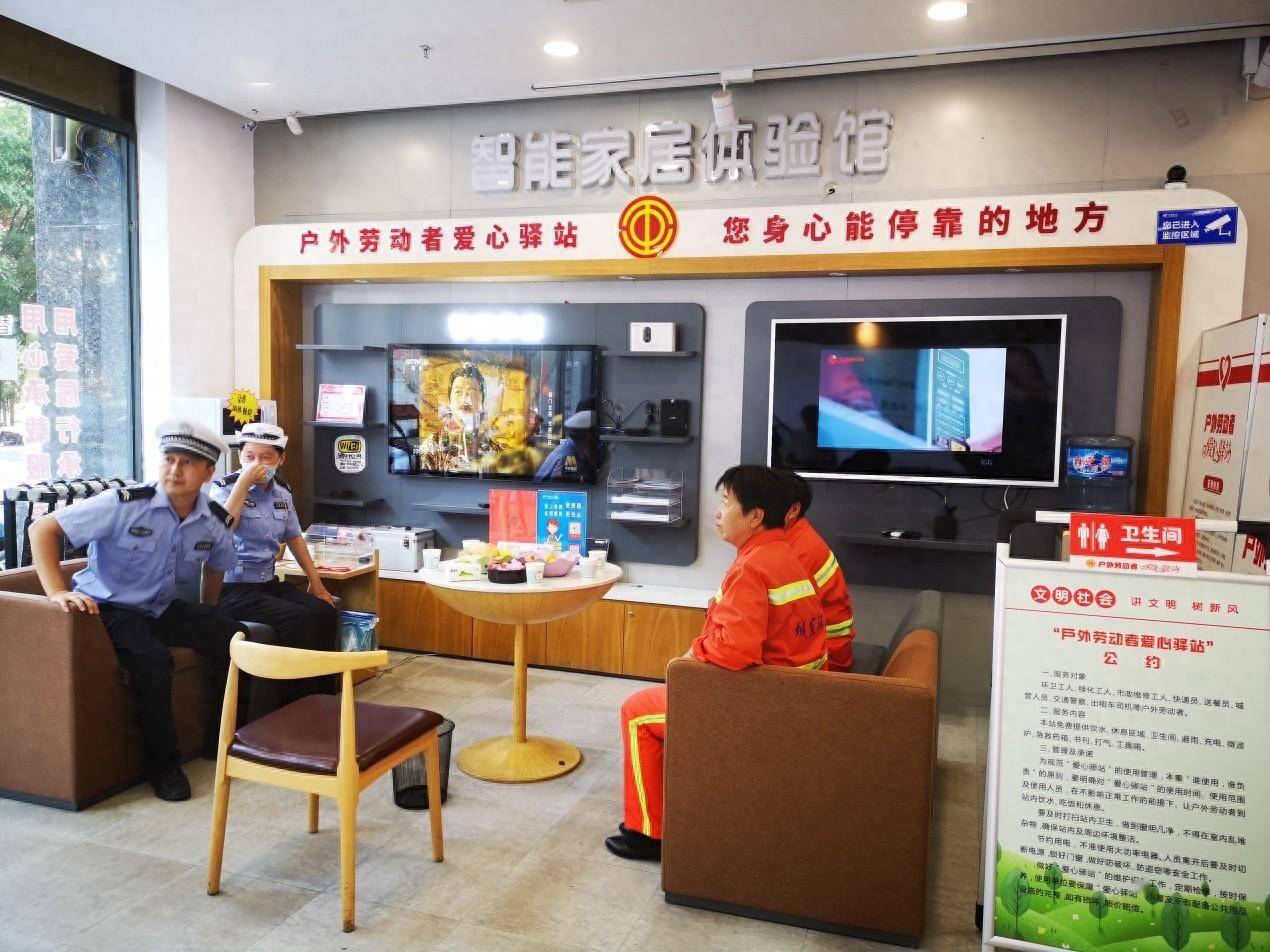 市区的环卫工人、快递小哥、外卖骑手等广大户外工作者享受到了爱心服务。环卫工人张大姐发自内心地说:“有这样一个可以休息的地方,天热了遮遮阳、下雨了避避雨,我们感到很知足,十分感谢”。中国电信朔州分公司爱心驿站致力于为户外劳动者解决“如厕难、饮水难、吃饭难、休息难”等实际问题,让他们体会到家的感觉。除配备基础的服务设施外,还增加了无障碍通道、免费加热餐食、雨伞、急救用品,贴心服务受到了群众的一致好评。