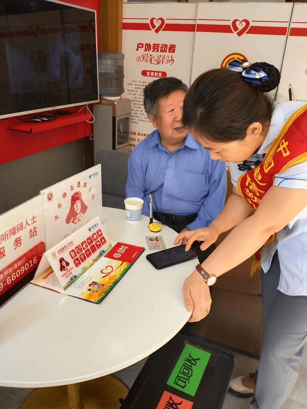 中国电信朔州分公司履行社会责任,在实体渠道建立了54家爱心驿站,面向全体市民特别是户外劳动者开放,提供饮水、充电、免费WIFI、休息、手机辅导、医疗急救用品等便民设施六大基础服务。今年以来,组织开展线下送爱心、关爱户外工作者活动30余场,线上防诈知识普及直播活动200余场,服务人数超2000余人次。