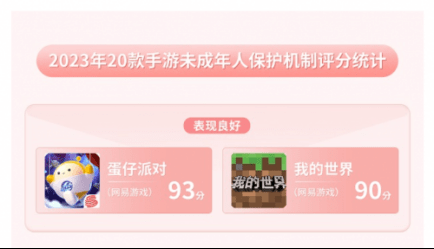 10月24日,消费日报发布《20款手游未成年人保护测评报告》。报告显示,“蛋仔派对”在二次认证、未成年人社交与内容防护以及关爱平台便捷跳转等方面优势较为明显,得分93分,夺得榜首。