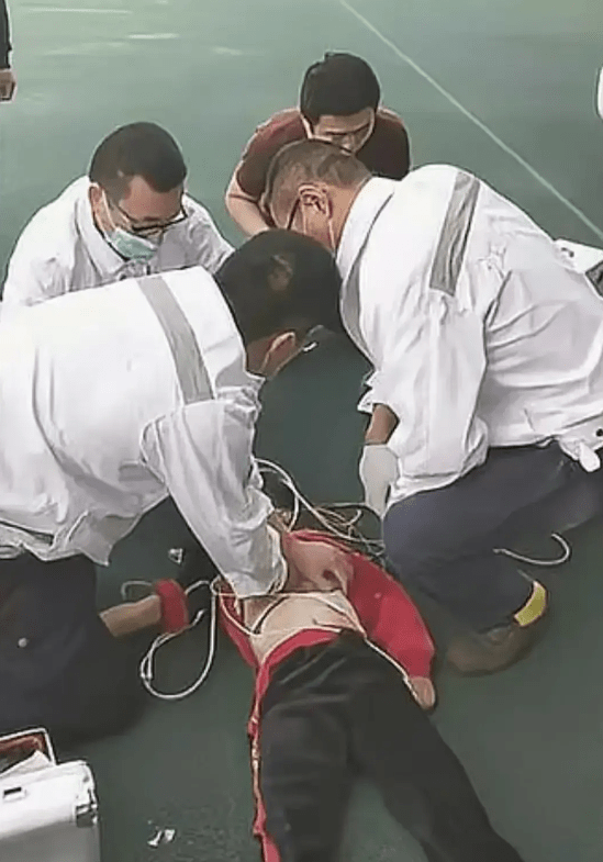 此时体育老师和班主任老师蹲在朵朵身旁,试图唤醒朵朵,然而朵朵依旧没有任何效果,2分钟后,体育老师开始给朵朵进行心肺复苏。