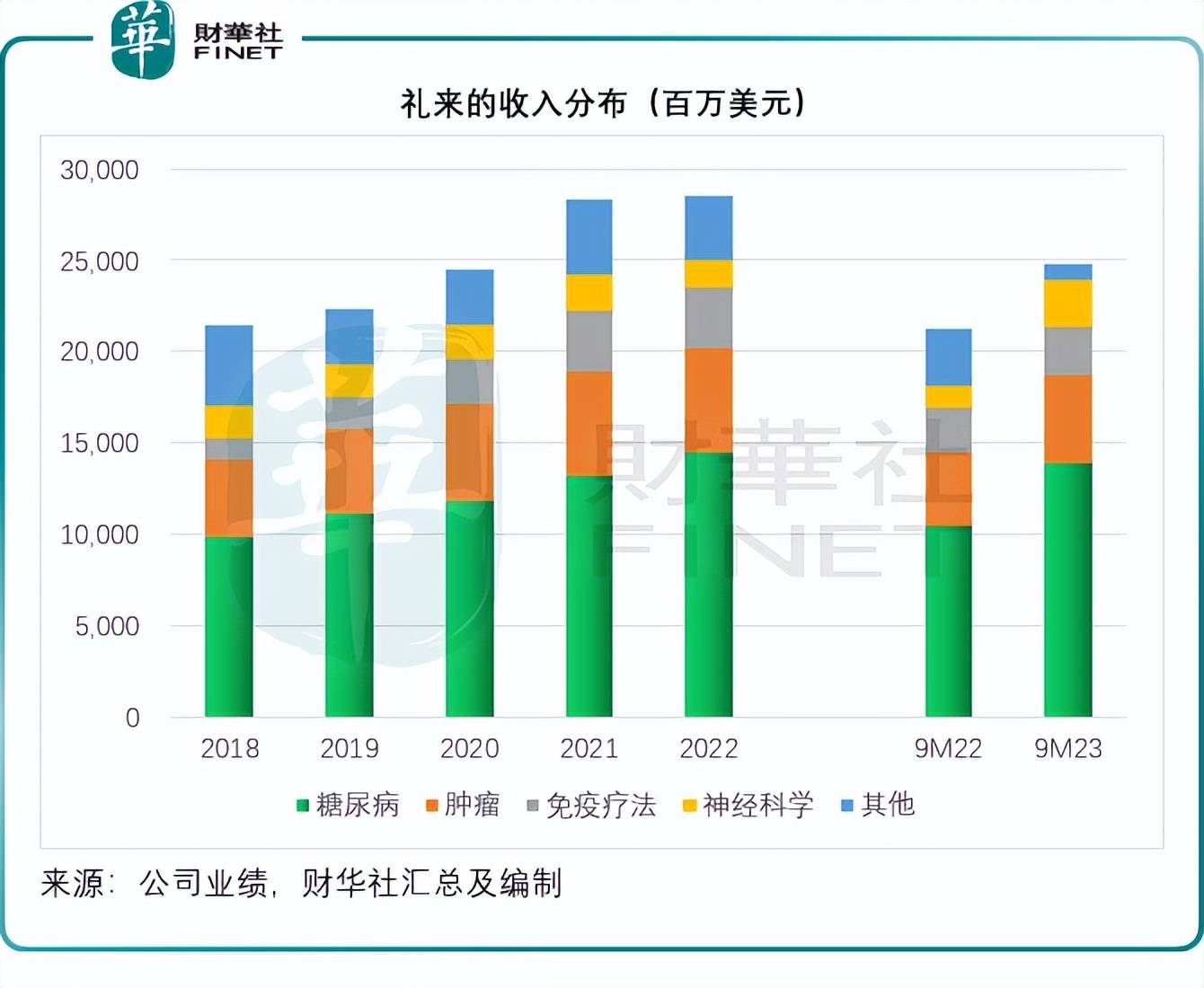 礼来的产品组合覆盖治疗糖尿病、肿瘤、免疫疗法、神经科学等的多种适应症,其中糖尿病用药的收入占比最高。