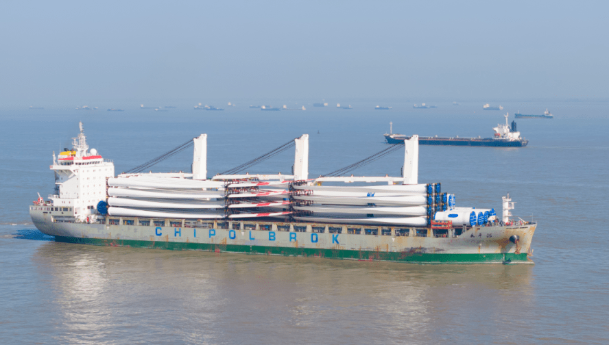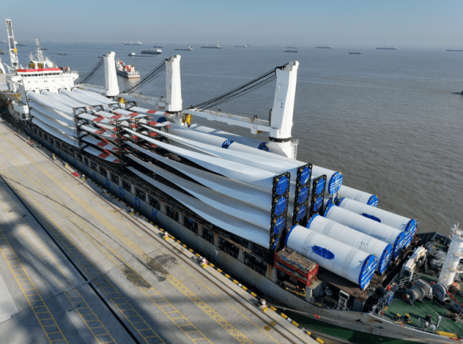 11月3日上午,中波“太平洋”轮驶离江苏太仓码头,装载中国出口北马其顿装机规模最大的风电项目设备驶向欧洲。