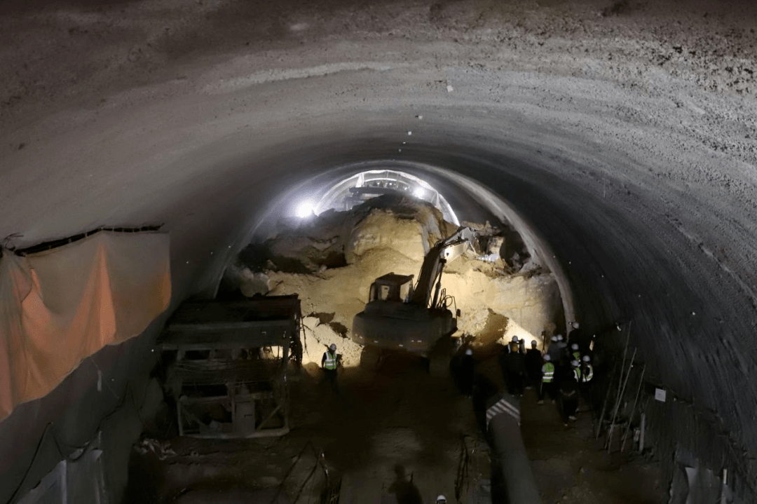 安康隧道位于南秦岭中山峡谷区,全长7001米,属于单洞双线隧道,其地质构造复杂,岩性多变。中铁九局西康高铁二工区经理曲锐介绍道,VI级围岩长达800米,最小埋深9米,地层以膨胀土、砂卵石、风化千枚岩为主,位于富水区、长段落土石交界地段,存在危岩落石、围岩失稳、突泥涌水、软岩变形等高风险,是安康隧道地质条件最复杂、风险等级最高、技术措施最强、施工难度最大的施工区段,西康高铁全线唯一一座I级高风险(VI级围岩)隧道。