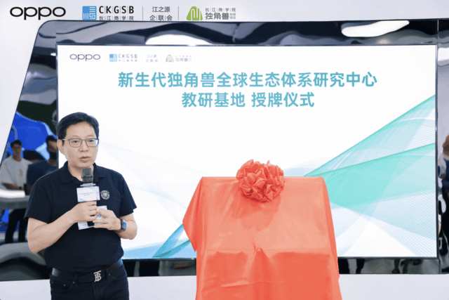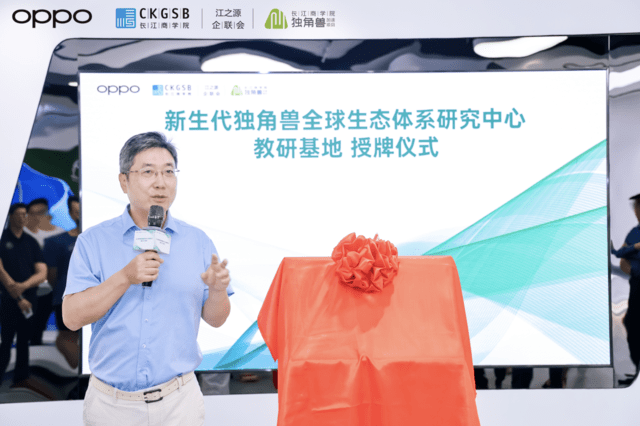 在授牌仪式中,长江商学院战略学教授、副院长、长江独角兽研究中心主任滕斌圣表示:“OPPO与长江商学院缘分颇深,OPPO高管团队中不乏长江商学院的校友。长江商学院期望未来携手OPPO,一起助力更多企业在不确定中把握确定性,增强企业韧性,穿越周期,并围绕长期愿景,成为推动产业发展和科技创新的重要力量。”