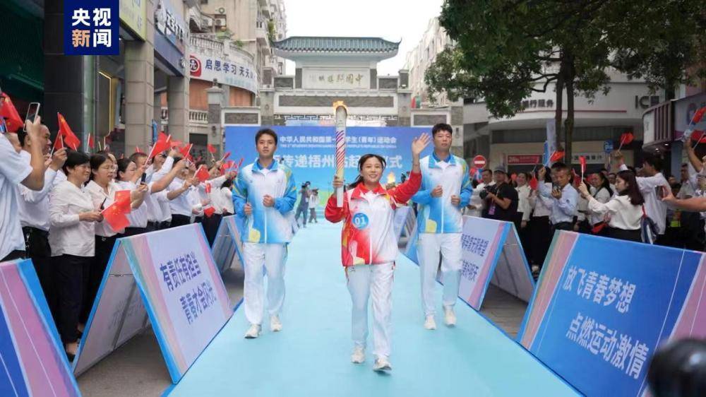 11月3日上午,全国首届学生(青年)运动会广西梧州站的火炬传递正式开跑。