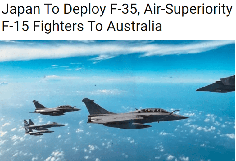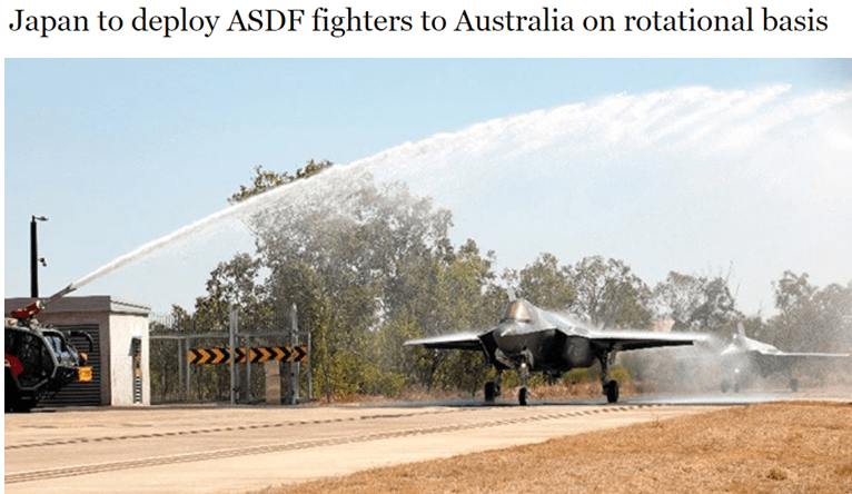 报道称,日本计划轮流派遣包括F-35、F-15和F-2在内的多型号战机,以联合训练的名义,轮换前往澳大利亚,驻留时间预计是每年几个月,并计划在战机轮换的空挡期,让地勤人员驻留基地。