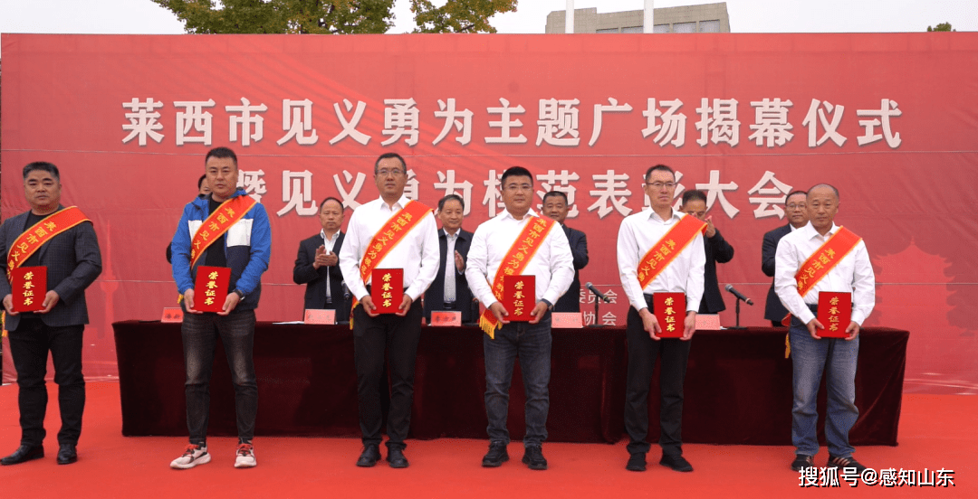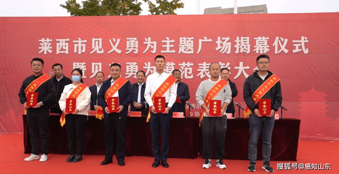 活动中,莱西市见义勇为协会会长潘新坤宣读了《2023年“莱西市见义勇为模范(群体)”表彰通报》,对12名“莱西市见义勇为模范”进行了集中表彰,莱西市见义勇为协会副会长闫浩介绍了主题广场筹建情况,与会人员共同见证了青岛首个见义勇为主题广场的揭幕,集中参观了主题广场。