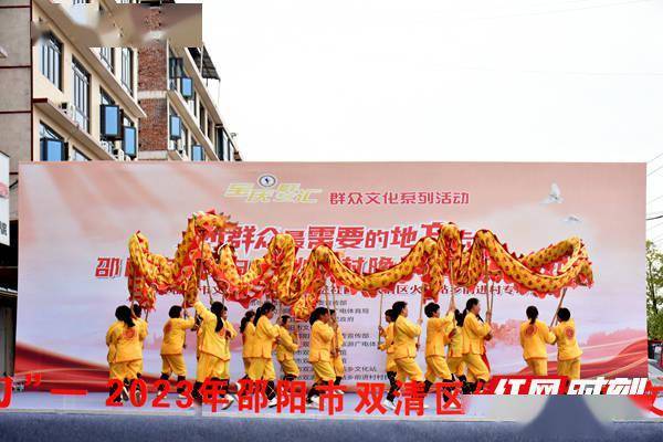 活动在热闹的舞狮《威龙》中拉开序幕,抒情歌曲《你来了》以其优美的旋律、平稳的节奏,深情地倾诉了党中央对人民真挚的情怀以及各族人民对党和生活的热爱之情,花鼓戏选段《刘海砍樵》真实地展现了劳动人民向往真善美的愿望,彩带舞《你从草原走来》用翩翩起舞的方式庆祝幸福生活,跳出了欢快和喜悦,威风鼓表演《陪你牵手闯天涯》以其强烈的艺术魅力感染了在场所有群众,12个节目精彩纷呈,博得现场群众的阵阵掌声。
