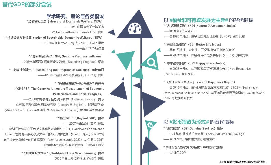 一项较为近期的、由主流机构发起的倡议,即为世界经济论坛(WEF, World Economic Forum)于2021年发布的《新经济的仪表盘——为后新冠疫情时代的复苏打造一个新的测量方式》,旨在号召人们从“繁荣”“地球”“人民”“制度”这四个方面来订制新的经济测量方式[14]。