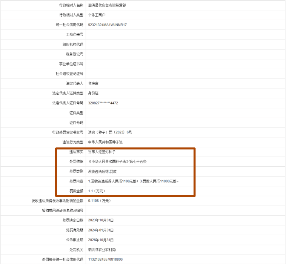 就因为销售劣种子被罚!!