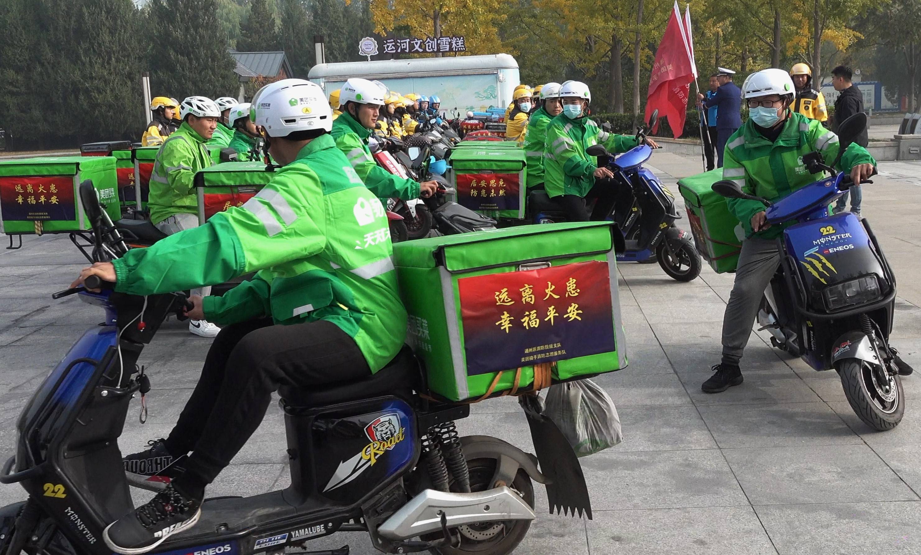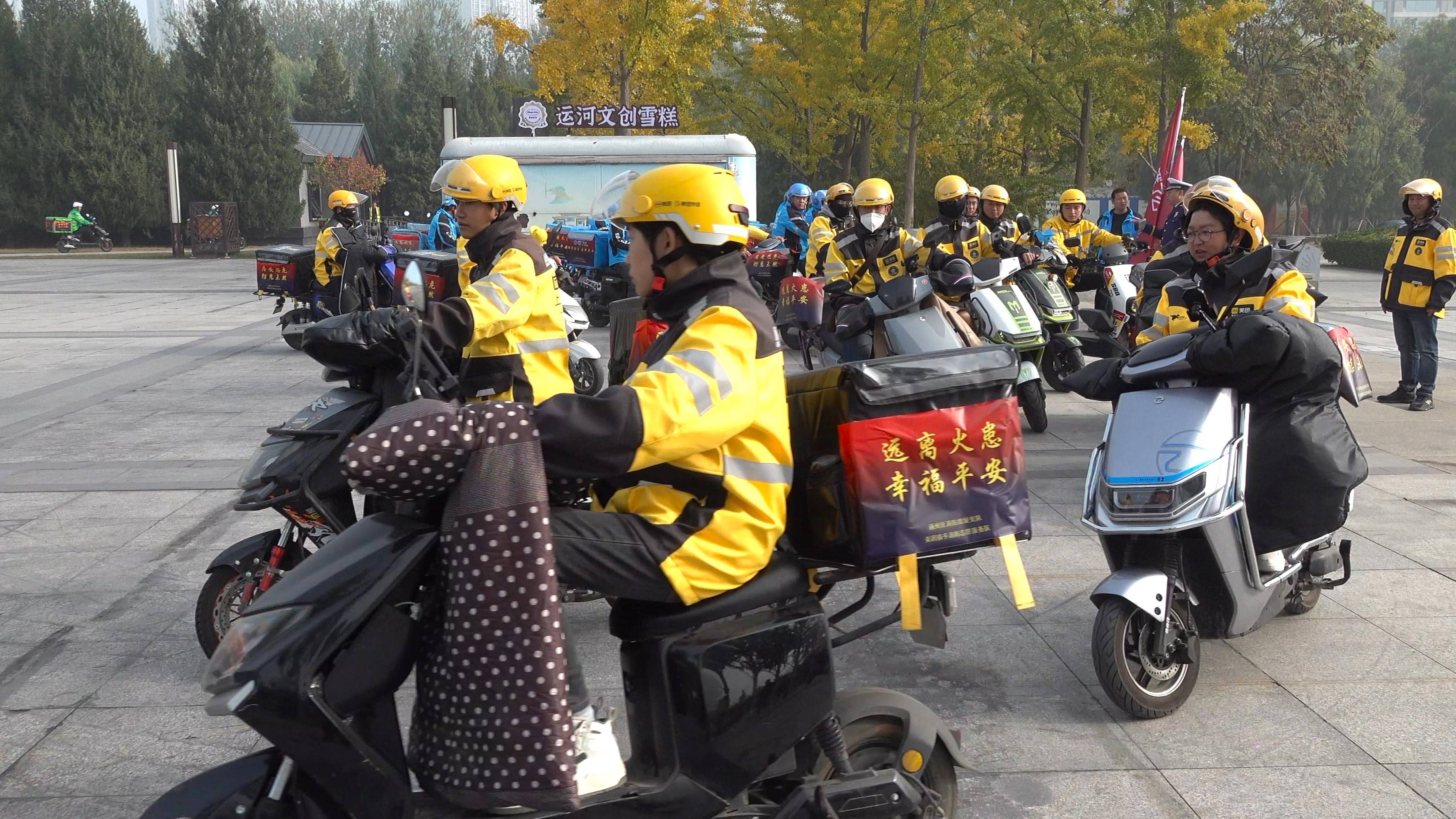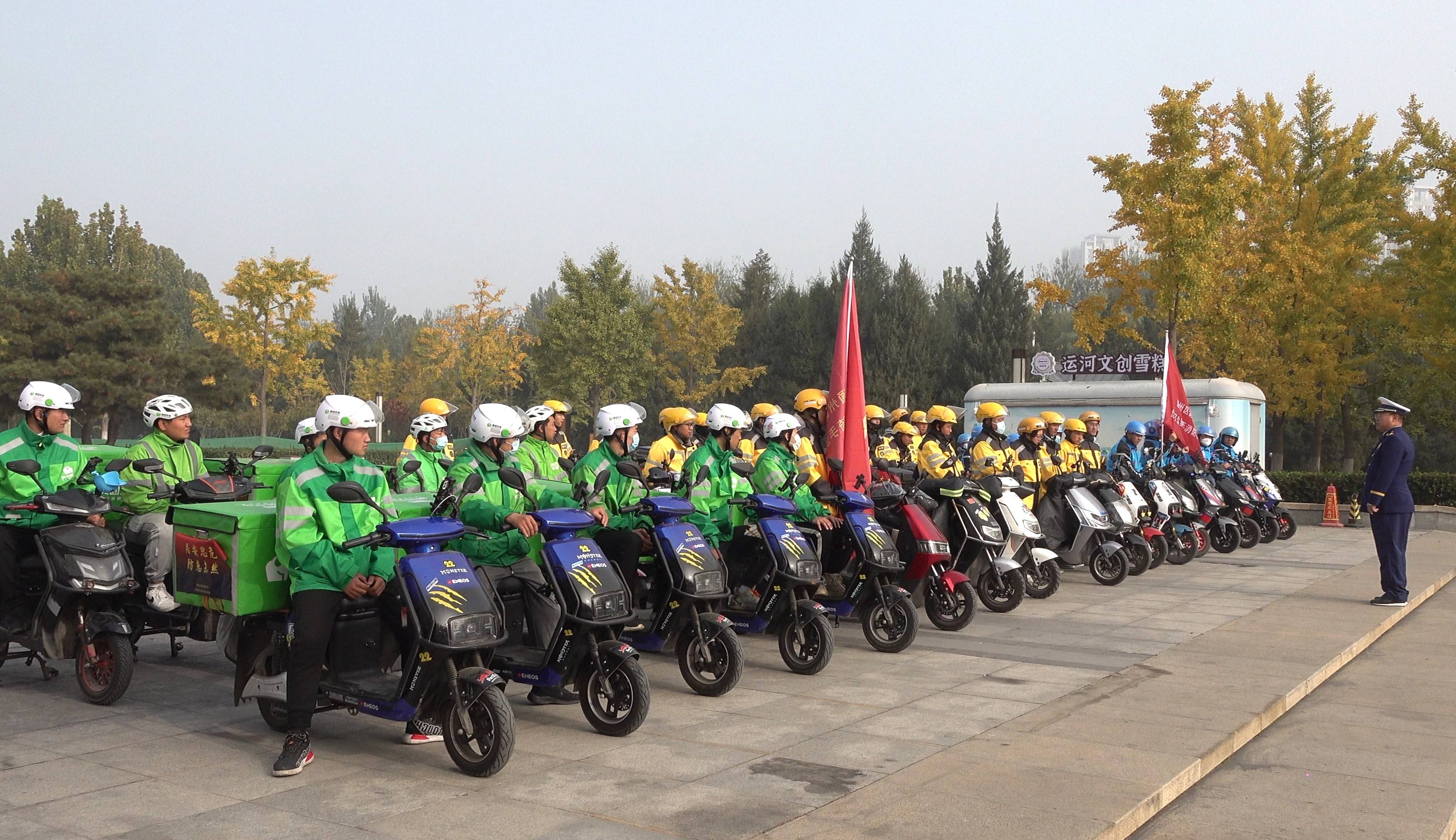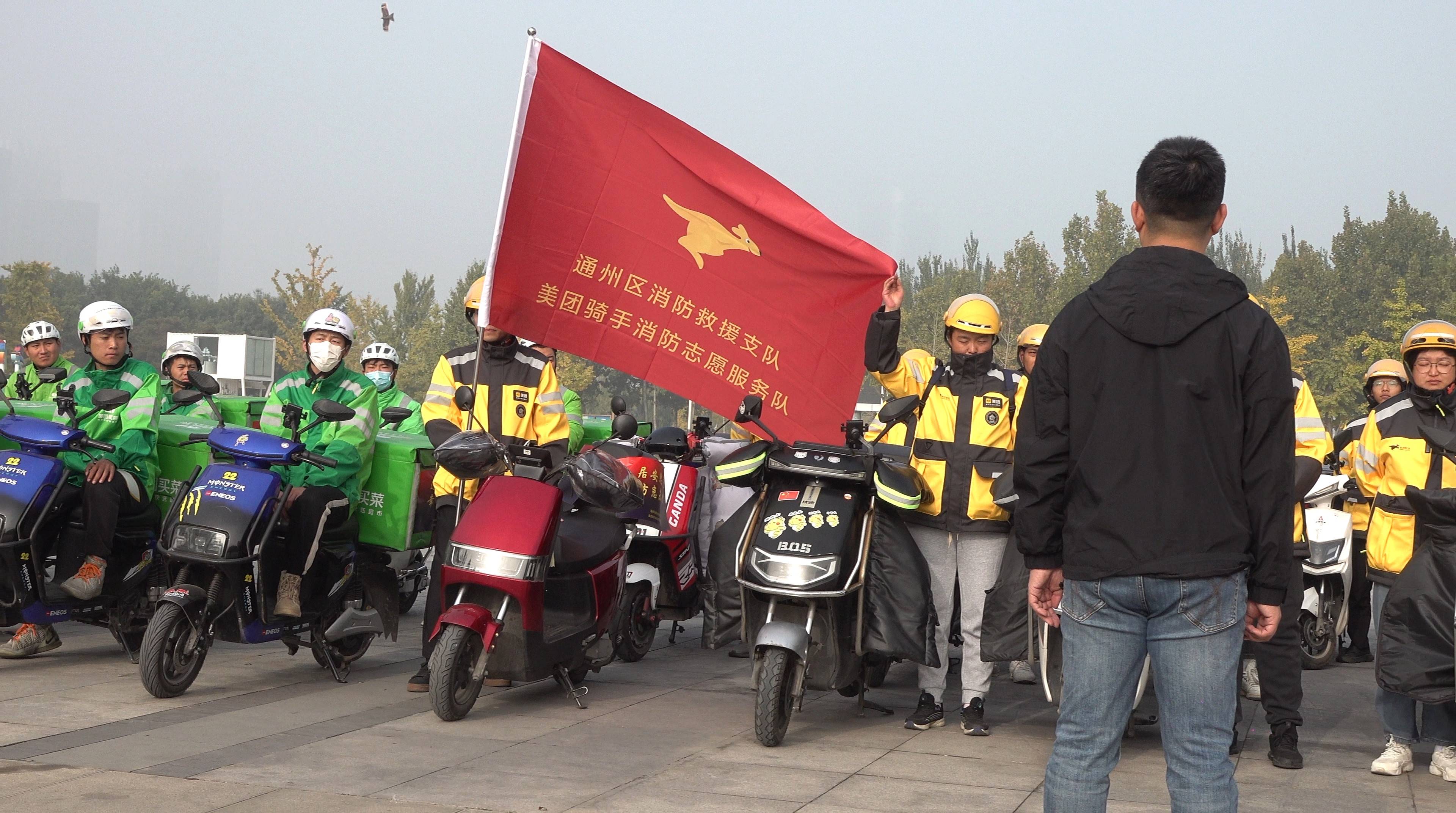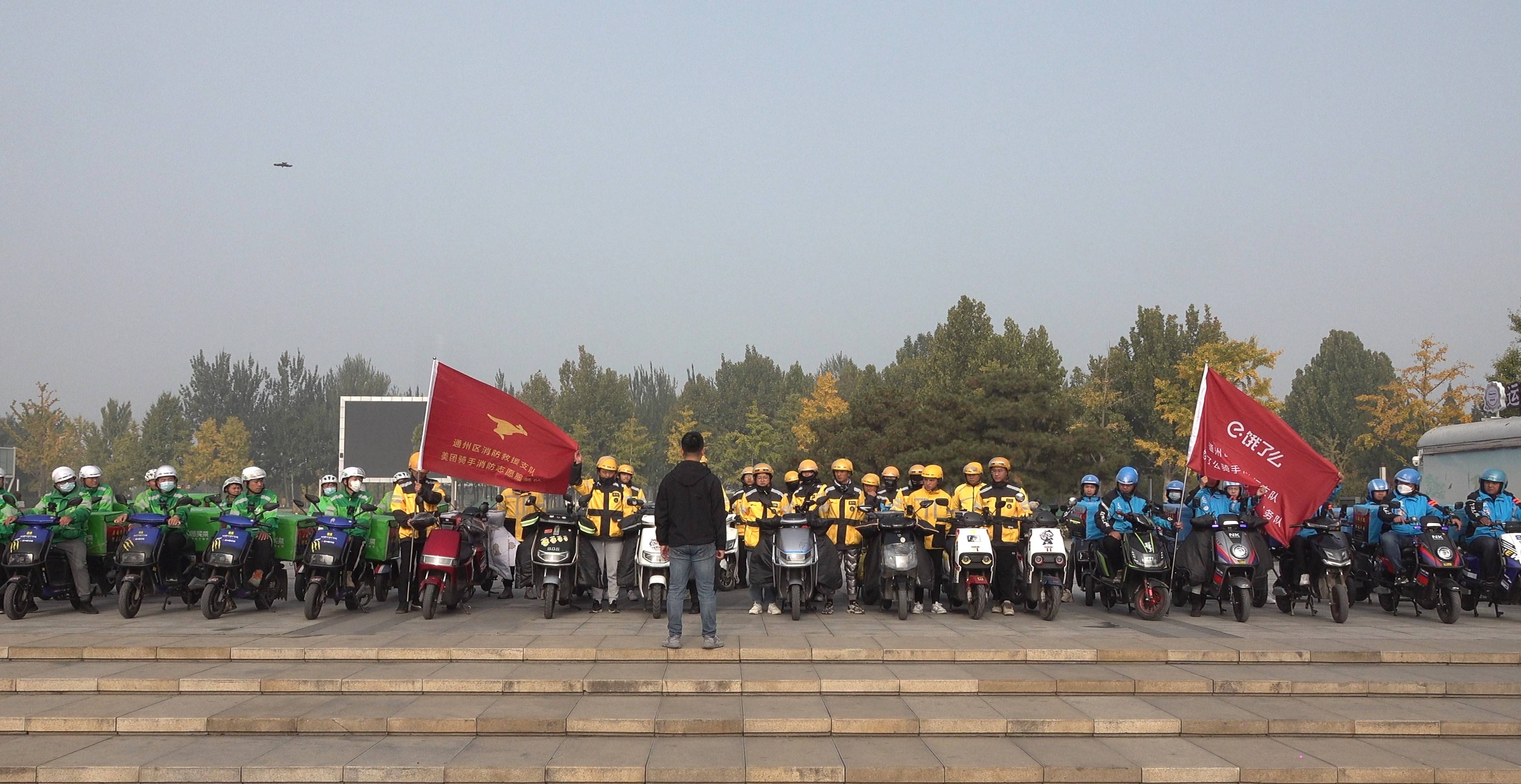 “119”消防安全宣传月期间,为进一步加强全区消防安全宣传教育工作,扩大消防安全知识宣传覆盖面和影响力,提升公众消防安全意识,11月1日上午,通州消防联合美团、饿了么外卖平台在通州运河文化广场举行消防志愿服务队发车仪式。通州消防相关领导,美团、饿了么消防安全负责人和骑手配送员共100余人参加活动。
