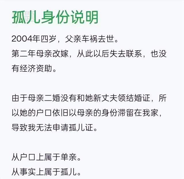 在视频里哭诉的这位学生姓朱,是一位来自于贵州山区的建档立卡户,而且按照他的描述,他的父亲在他四岁那年就因病去世而且母亲也随后改嫁的孤儿,还好爷爷奶奶把他捡走并且拉扯大。一家人一直过着非常艰苦的生活,不仅是村里的建档立卡户,还是低保户。
