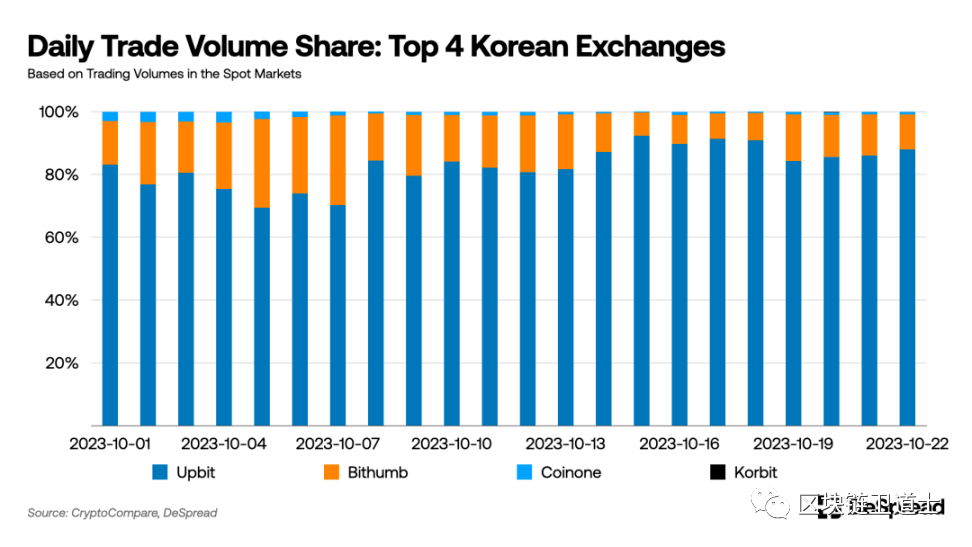 下面我们将通过韩国中心化交易所的数据来探讨韩国投资者的特点和倾向。分析主要基于四大交易所的数据:Upbit、Bithumb、Coinone 和 Korbit。部分分析是基于 10 月第三周(14 日至 20 日)的数据。