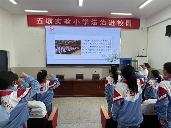 黄律师以“法”字入手,解释了法的渊源和含义,接着从校园安全、网络安全、交通安全三个方面向同学们生动地讲解了未成年人常见的伤害类型并告诉同学们如何避免伤害、如何用法律来保护自己。在互动交流中,黄律师用一件件触目惊心的真实案例让同学们懂得了生命的宝贵。同学们也积极地参与互动,表达自己的想法和感悟,现场气氛十分活跃。活动最后,在黄律师的带领下,同学们大声宣誓,将“珍爱生命,远离伤害”的铮铮誓言牢记于心。