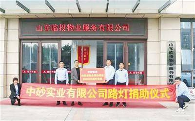 近日,中砂实业有限公司向山东临投物业服务有限公司捐赠22盏太阳能路灯,共计6万余元。