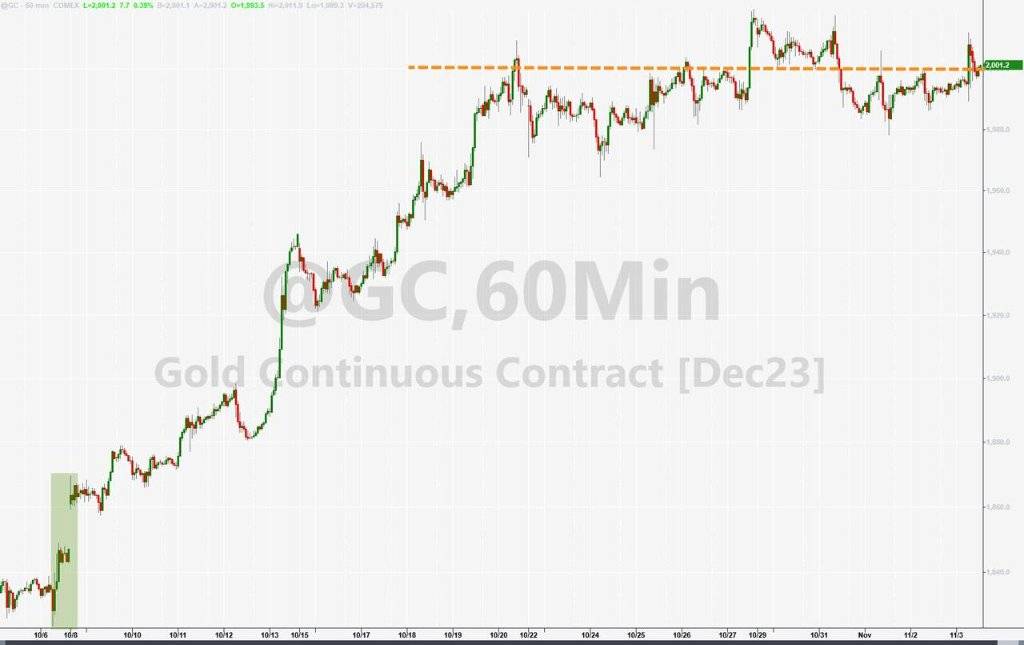 黄金得到美元加速下行之支持,继续反弹,纽约期金在美国就业报告发布后曾涨破2000美元,收盘时略低于这一关口,逼近周一站上该关口后所创的7月末以来高位,本周勉强保住了巴以冲突爆发后持续单周累涨的势头,但考虑到美元大跌,黄金累计微涨的表现显得疲软。
