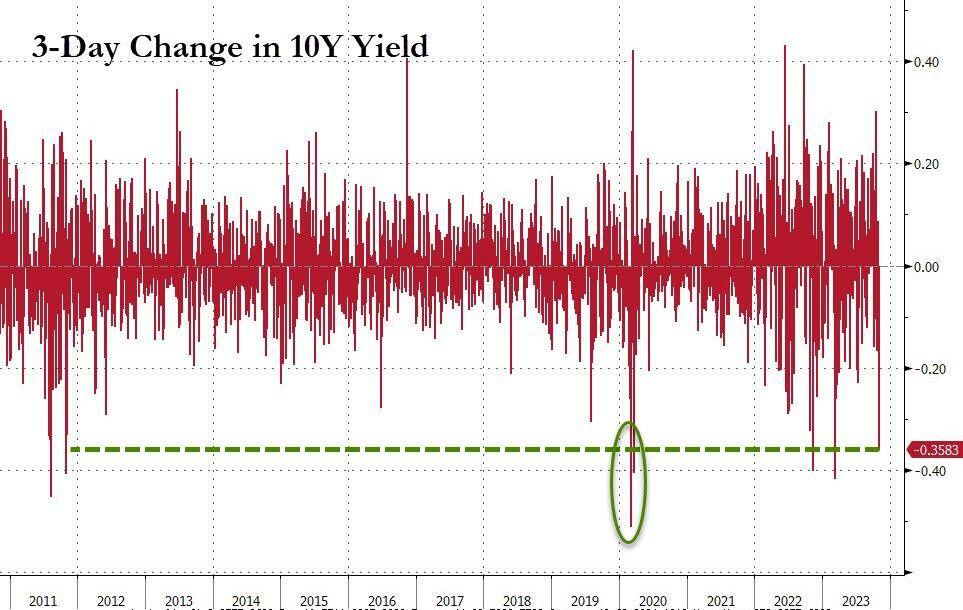 截至周五,十年期美债收益率创2020年疫情初期以来最大三日降幅,不计疫情期间则创十二年来最大三日降幅