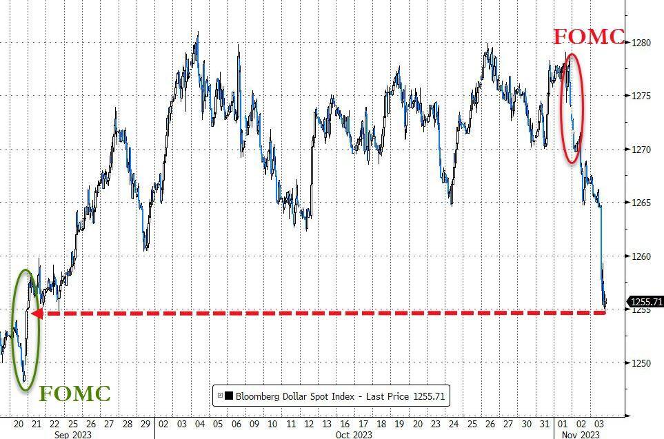 彭博美元现货指数回落到9月美联储货币政策会议时水平,创今年内最大三日跌幅