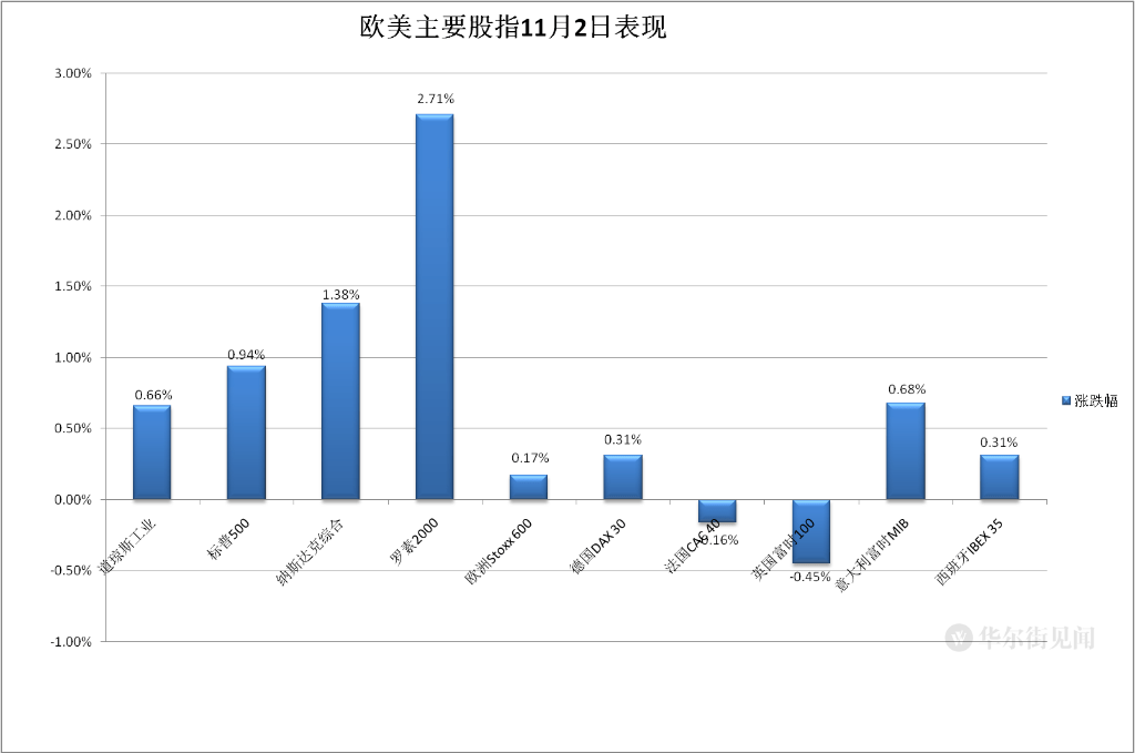 价值股为主的小盘股指罗素2000收涨2.71%,两日跑赢大盘,连涨四日至10月17日以来高位 。科技股为重的纳斯达克100指数收涨1.21%,连涨五日,两日刷新10月17日以来高位。