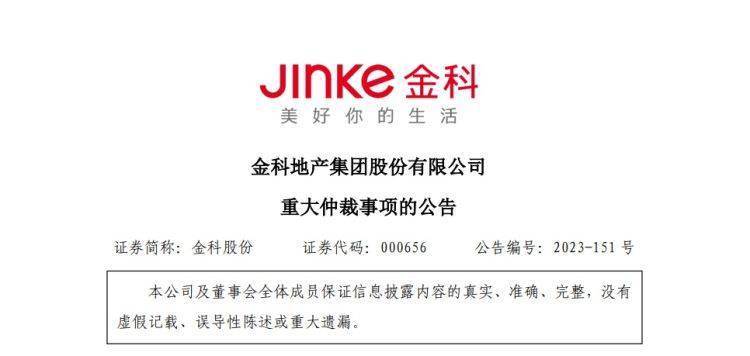 11月3日晚间,金科股份(000656)发布公告称,公司近日收到上海仲裁委员会的《仲裁通知书》,获悉公司控股子公司贵阳花溪金科房地产开发有限公司、贵州金科天宸房地产开发有限公司、重庆金科房地产开发有限公司作为被申请人已被申请人深圳市创朗企业管理有限公司提出仲裁申请,案件已被上海仲裁委受理。上市公司控股子公司作为被申请人,涉案金额13.27亿元。