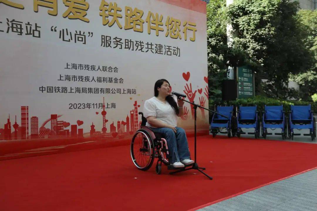 活动仪式上,2004年雅典残奥会铁饼冠军、上海市肢残人协会副主席王婷就残疾人出行服务提出需求和倡议。铁路上海站“心尚”服务工作室首席领衔人汤杰宣读服务承诺。