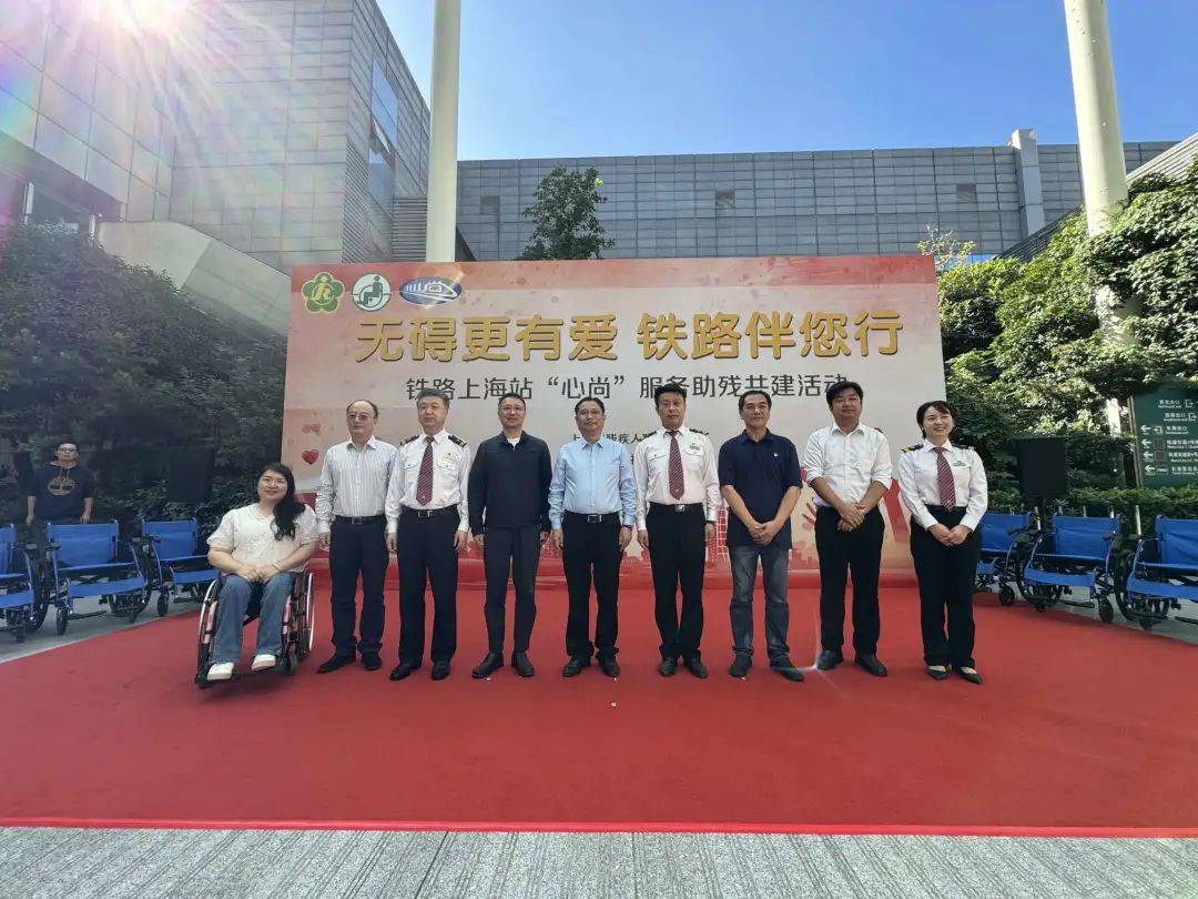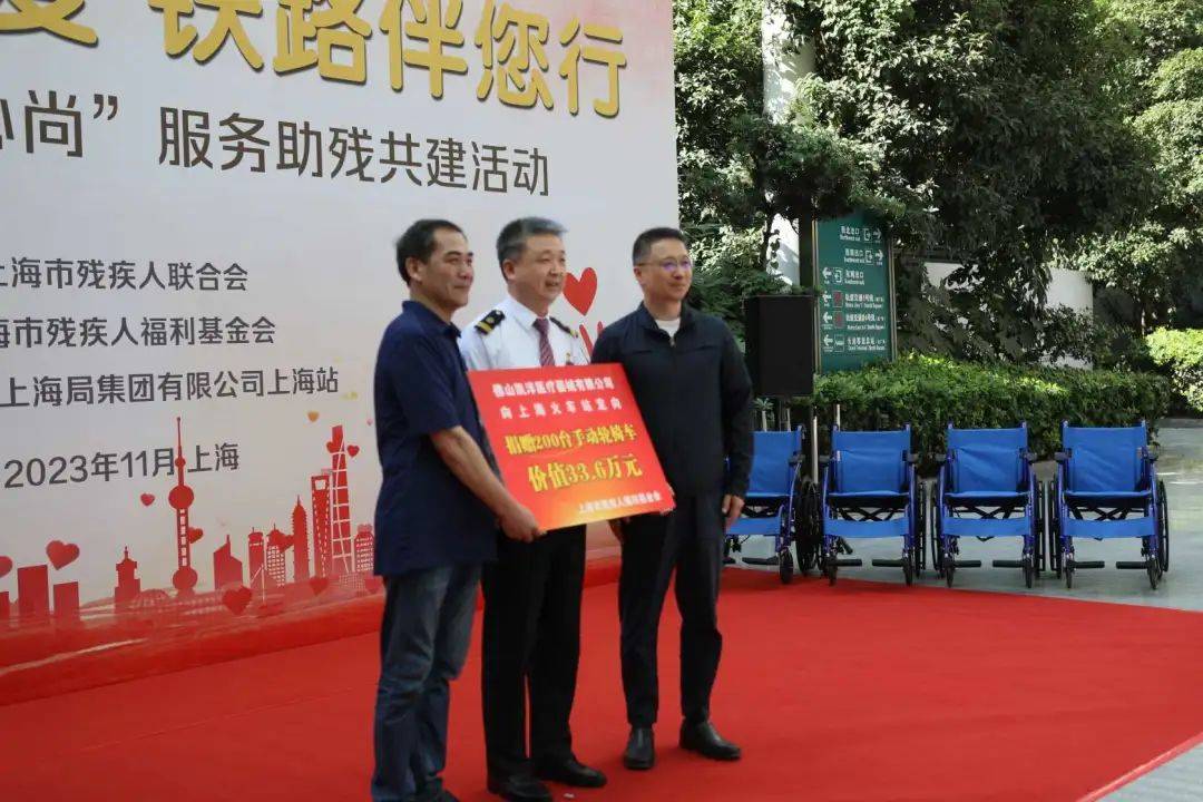 上海市残疾人福利基金会携手爱心企业佛山凯洋医疗器械有限公司,向铁路上海站捐赠200辆爱心轮椅。
