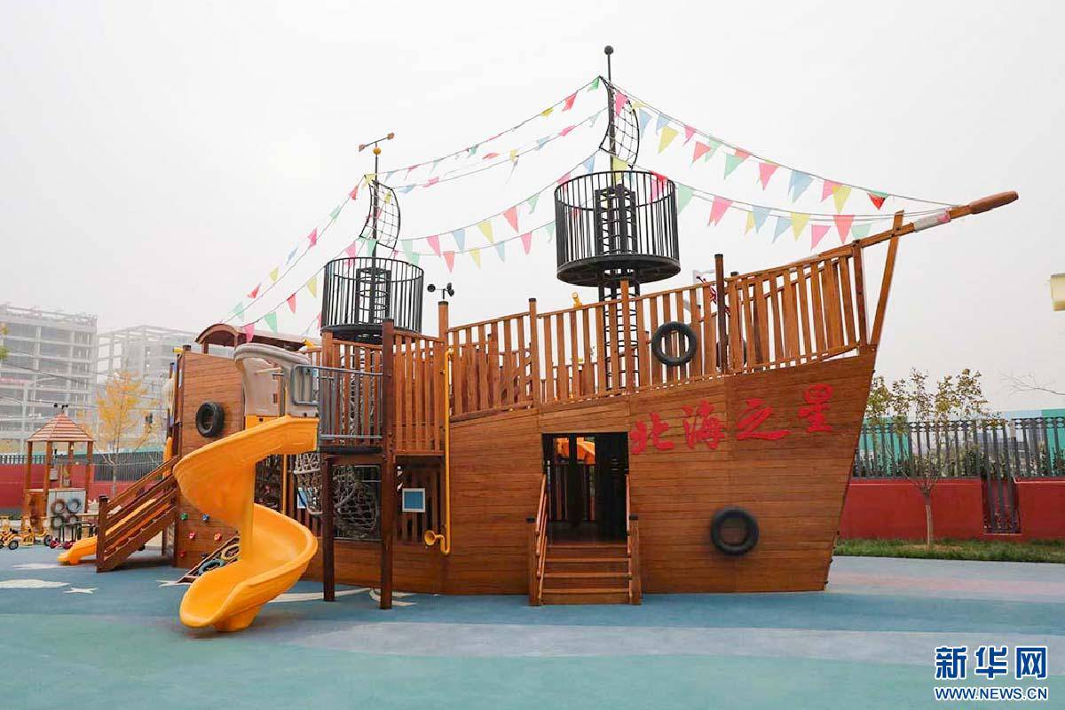 雄安北海幼儿园“北海之星”户外大型运动器械。新华网 王立鹏摄