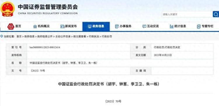 证监会官网显示,4名当事人分别为:钟葱,男,1975年5月出生,北京金一文化发展股份有限公司(以下简称金一文化)原实际控制人、董事长、总经理;胡宇,男,1975年4月出生;李卫卫,男,1986年11月出生;朱一栋,男,1982年2月出生。