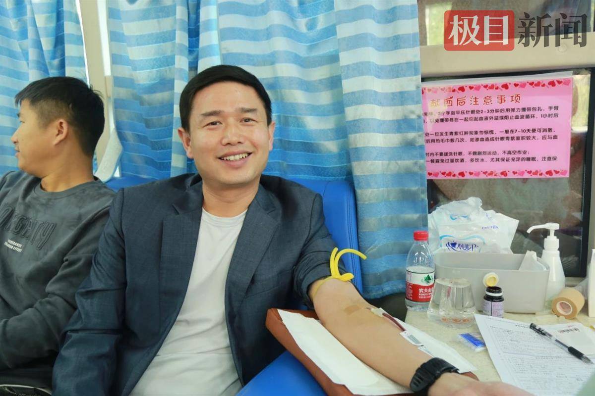 活动现场,孝南区祝站镇政府镇长赵腾飞带队献血,他告诉极目新闻记者:“无偿献血是一种‘我为人人,人人为我’的互助行为,是一项保障广大人民群众健康安全的公益活动,能帮助那些急需血液的人,我感到很光荣!”